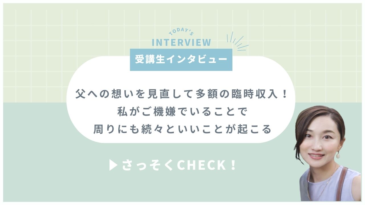 今回ご紹介したあかりんさんは、悩みがおおよそ解消し、自分ではあまり問題意識のない時期に思考の学校に出会いました。しかし、自分のペースで見直しを行っているうちに、自分自身の体調だけでなく、これまでとは比べ物にならないくらいの臨時収入や、ご主人のお給料アップ、実家の環境改善など、あちこちに良い出来事が起こりました。