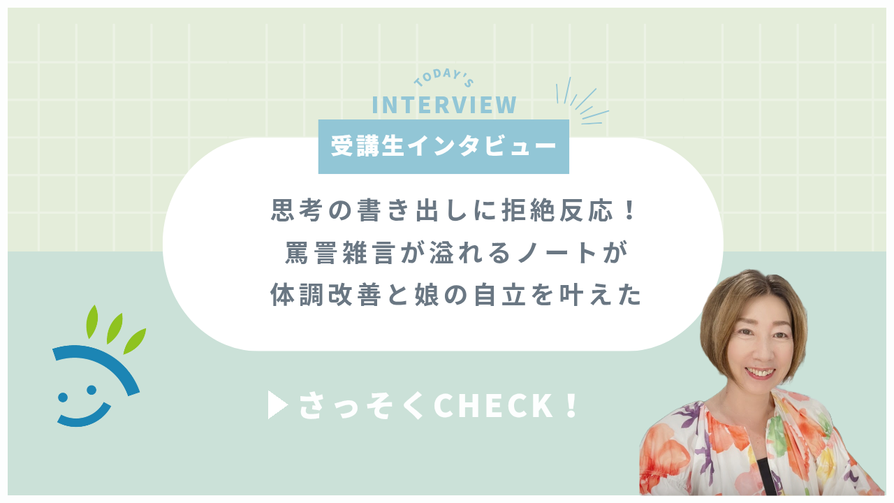 今回は、思考の学校でのワークを通じて、想像以上に溜め込んだ自分の思いや思考の現実化に気づき、家族との関係性や自分の仕事への向き合い方に良い変化があったちゃみさんの事例をご紹介しました。
