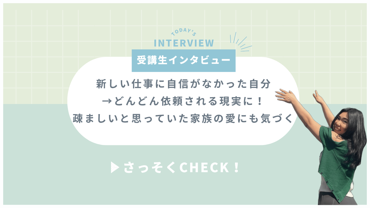 小泉華子先生の基礎講座を受けてから、変化がありました。華子先生に本当に講師のお仕事をしたいのか問いかけられた時に、「本当にこの仕事がしたい!」と改めて気づけたんです。そのZoom講座が終わった後に、すぐ講師講習の復習に取り組むことができました。