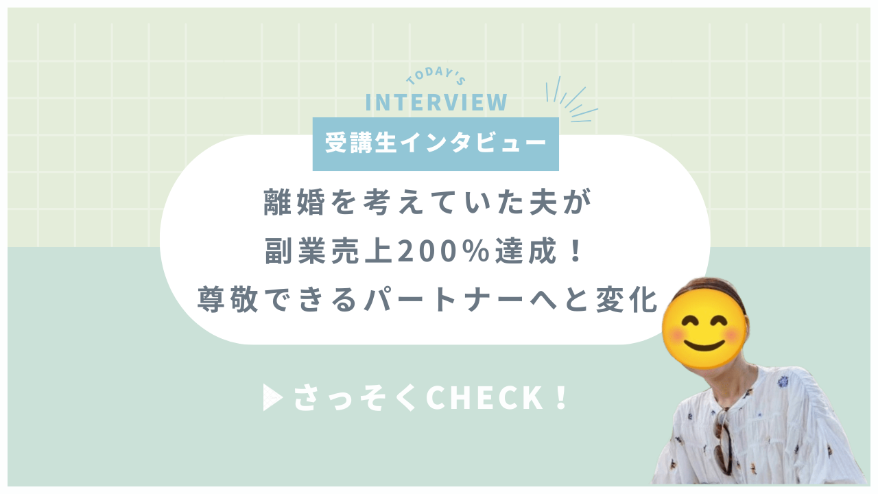 3か月講座でパートナーシップを見直していたんです。そこで、先生から「手がかかる旦那さんを作り上げることのメリットって何かある?」と聞かれたんですよ。この視点がすごく参考になりました。