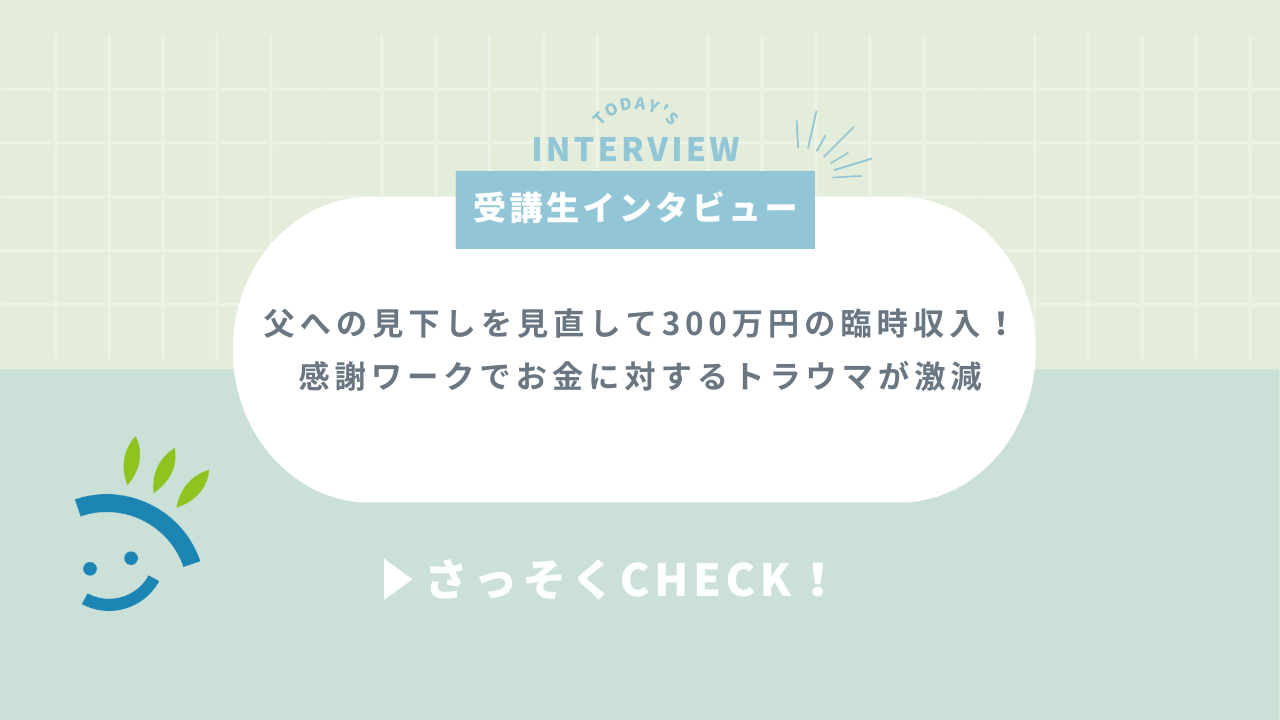 今回は、父親の借金でお金に対するトラウマを抱えていたCOTONOさんのお話です。父親への見下しに気づき、見直すことで尊敬できる存在になっていきました。そして、思わぬ臨時収入も!