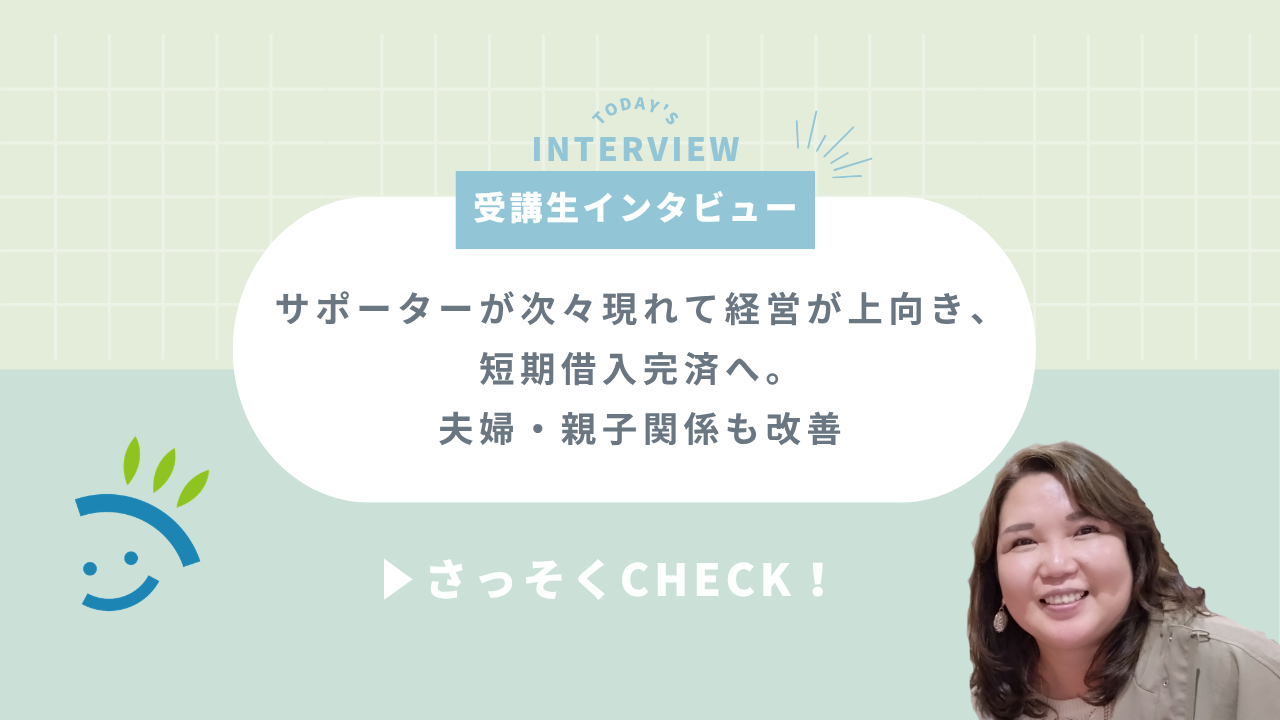 自分で頼んだら何十万ってすると思うんですけど、それを無料でやってもらえたんです。それだけじゃなくて、その相談を受けるうちに、主人も経営を見なくてはいけないって考え方が変わってきたんです。