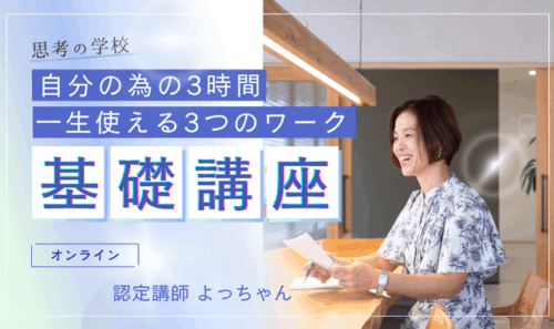 そんな私が「思考の学校」に出会ったのは、大好きでかけがえのない息子を亡くし「私のせいだ」「私がもっとこうしていれば」と自分を責め続ける日々を送っていたときでした。