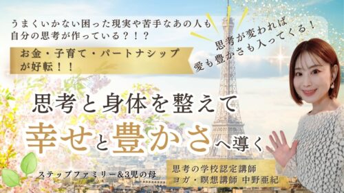 思考の学校 認定講師/ヨガ(瞑想)講師の中野亜紀です。