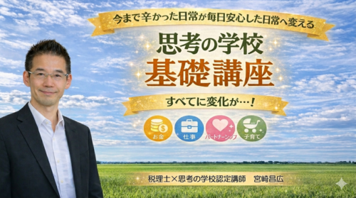 現在は税理士として勤務している傍ら思考の学校認定講師として、