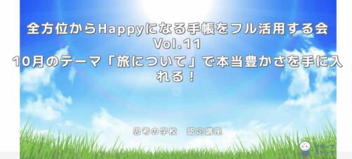 10月30日(木)21時〜 zoom開催|全方位からHappyになる手帳をフル活用する会Vol.11「旅について」で本当の豊かさを手に入れる! 2025.10.302025.09.19 勉強会・イベント 上級認定講師・真中伸也