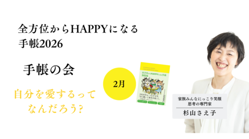 2/20(金) 20時〜zoom開催|全方位からHAPPYになる 手帳の会2026 【 2月】 自分を愛するってなんだろう? 2026.02.202026.01.24 勉強会・イベント 上級認定講師・杉山さえ子