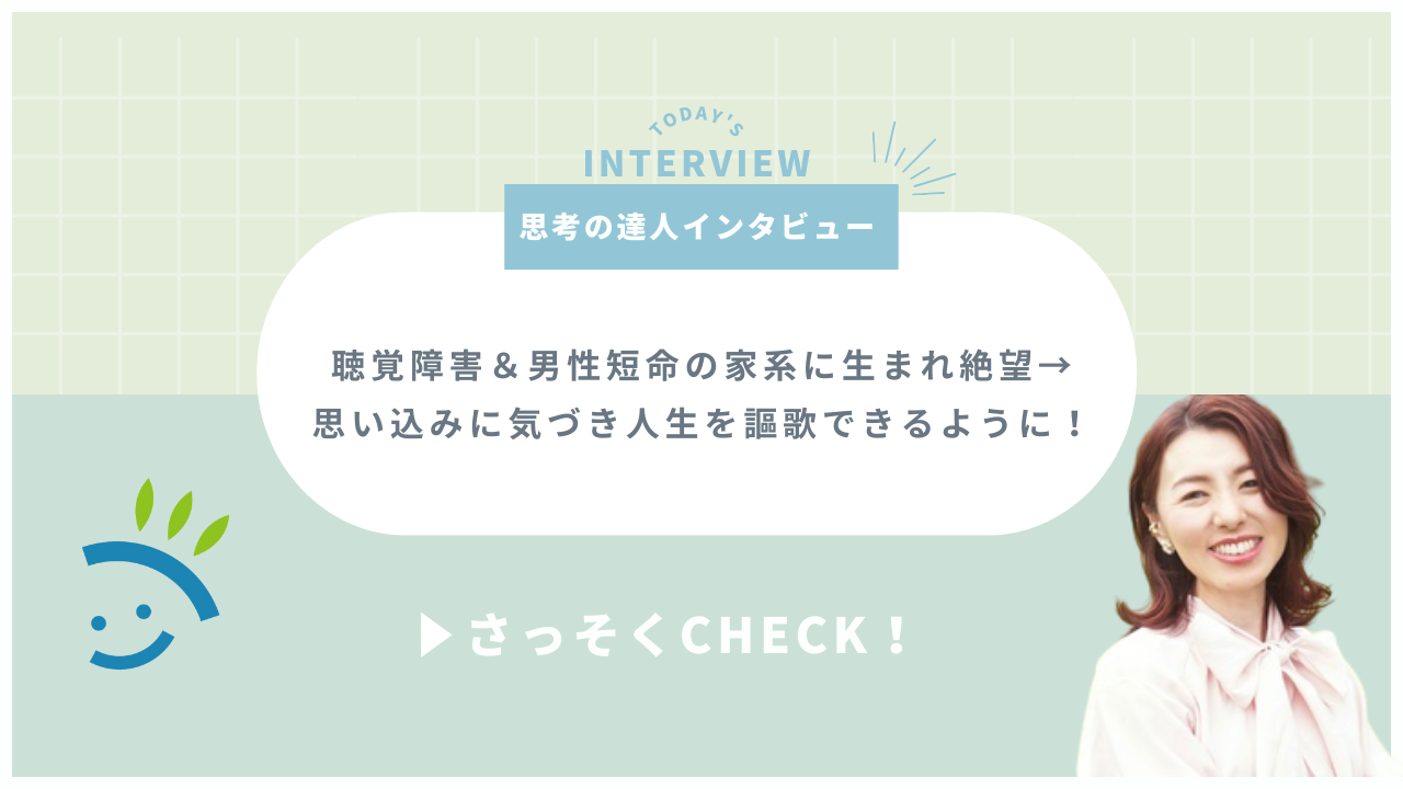 思考の達人から、どのように思考を見直して現実が変わっていったのか?をお聞きしていく【思考の達人インタビュー】。