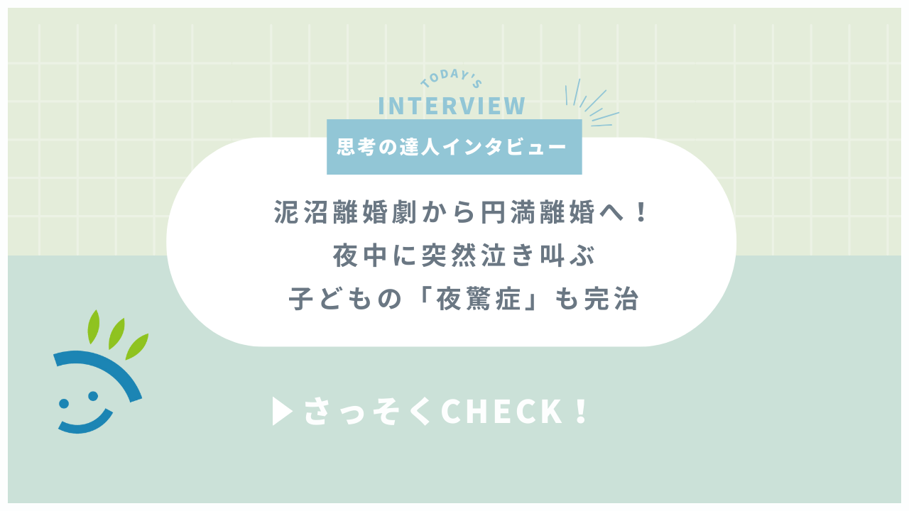 治し方を調べたところ、「自然と治ります」としか書かれておらず、手の打ちようがないと思っていました。ある日、また夜中に「ギャー」と怒り出し、ベランダの窓を開けたので、2階からそのまま飛び降りるんじゃないかと、とてもびっくりしました。今思えばそれが最後の夜驚症で、離婚をしてから夜驚症はなくなりましたね。